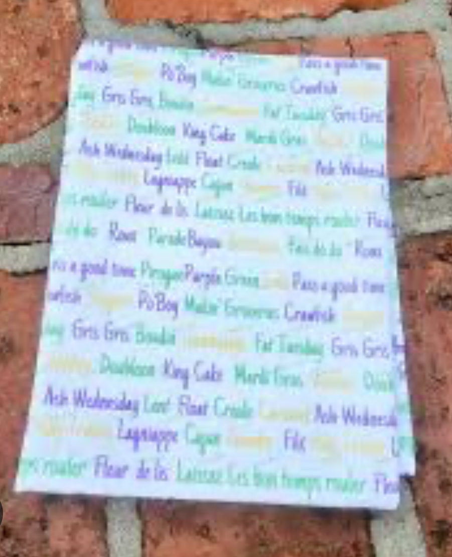 100% Cotton towel with Sublimated Mardi Gras Words design